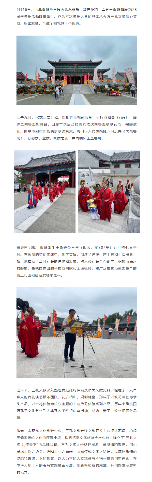 三孔文旅成功承辦辛丑年魯班誕辰2528周年祭祀大典
