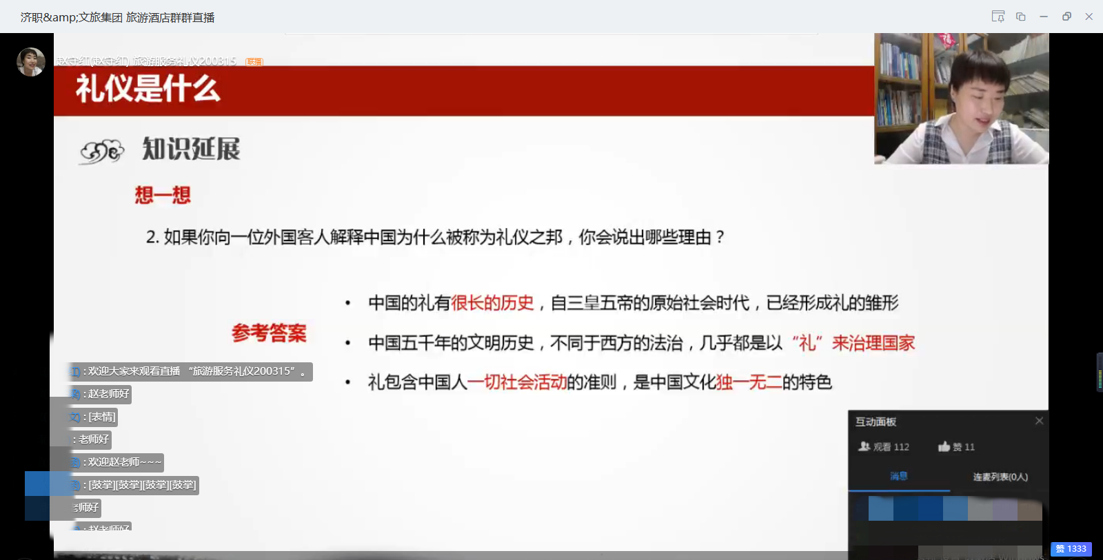 集團(tuán)充分發(fā)揮在研學(xué)游與文旅職業(yè)培訓(xùn)板塊的行業(yè)優(yōu)勢,積極聯(lián)系學(xué)院優(yōu)秀講師和區(qū)域內(nèi)、乃至全國知名的專家學(xué)者,這些老師在專業(yè)水平和理論研究方面都有很深的造詣,課件圖文并茂,聲像并舉,講解深入淺出,引人入勝,老師們在授課過程中結(jié)合自身工作實(shí)際和對行業(yè)發(fā)展的認(rèn)識,理論聯(lián)系實(shí)際,為學(xué)生充分解讀課程內(nèi)容。并在授課過程中設(shè)置習(xí)題和互動,在保證線上教學(xué)質(zhì)量的同時(shí)增強(qiáng)了學(xué)生的參與感,確保線上教學(xué)的教學(xué)進(jìn)度和質(zhì)量。