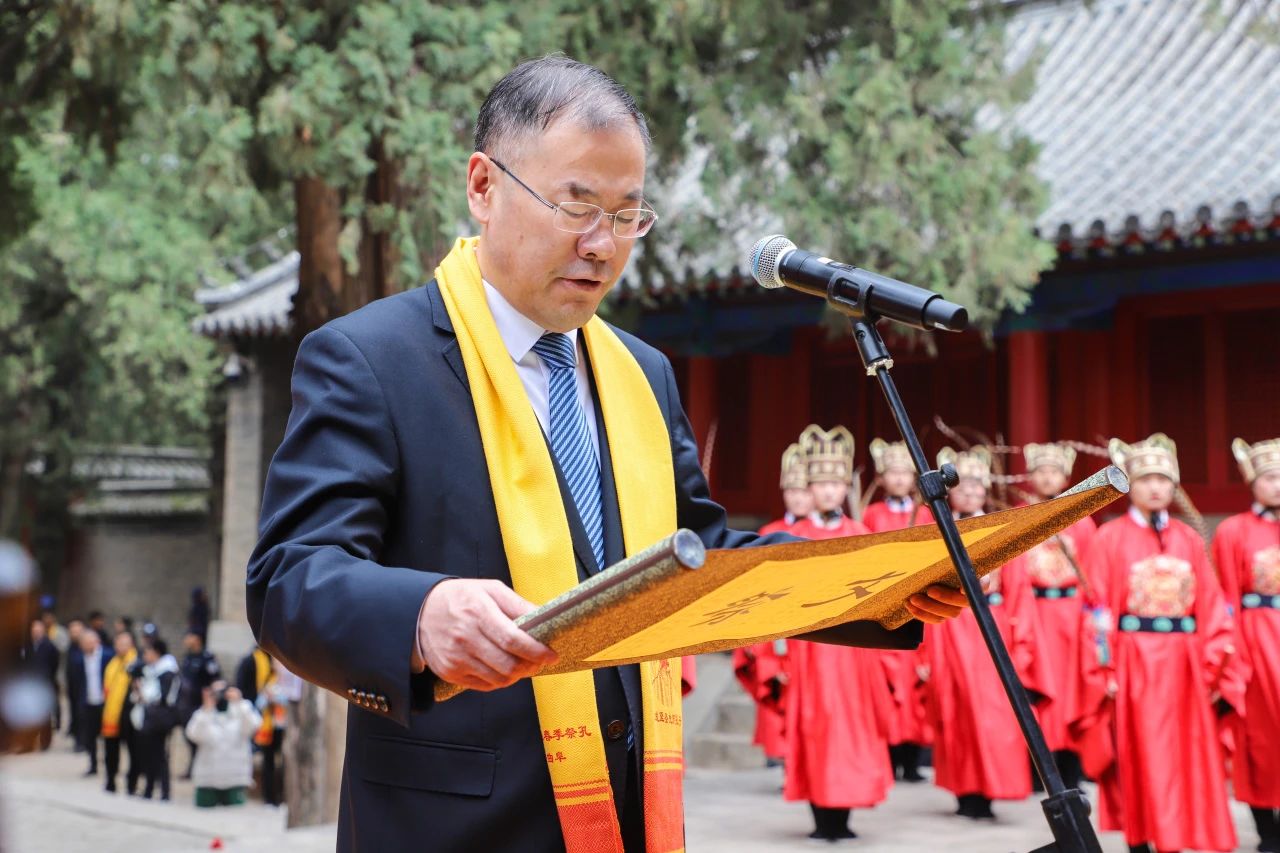 曲阜市委副書記、曲阜市人民政府市長(zhǎng)崔加清恭讀祭文。所有參禮嘉賓集體向至圣先師行三鞠躬禮。甲辰年曲阜尼山春季祭孔大典圓滿禮成。