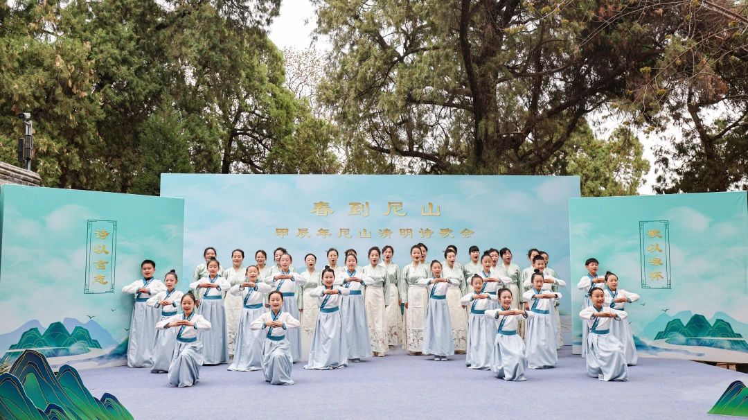 圣師之教,垂范至今,輝光日新,千秋傳唱。祭孔大典后,嘉賓來到尼山書院參加以“春到尼山·詩歌雅集”為主題的甲辰年尼山清明詩歌會(huì)。詩以言志,歌以詠懷,文以載道,伴隨著悠悠雅樂,曲阜師生代表吟唱《詩經(jīng)·小雅·鹿鳴》等廣為流傳的經(jīng)典詩篇,以尼山獨(dú)有的方式禮敬先師。