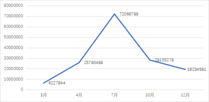 圖4 2020年“好客山東”抖音號在主要月份的視頻播放次數(shù)