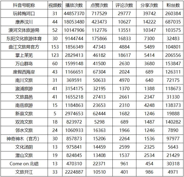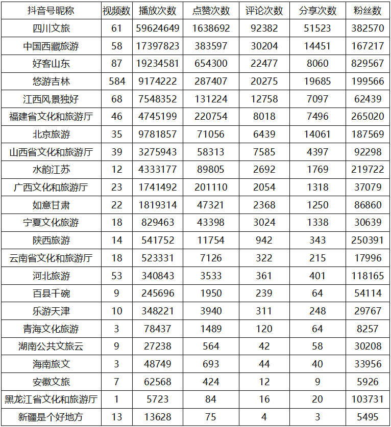 去年各級文化和旅游主管部門誰“抖”得好?分析報告來看看