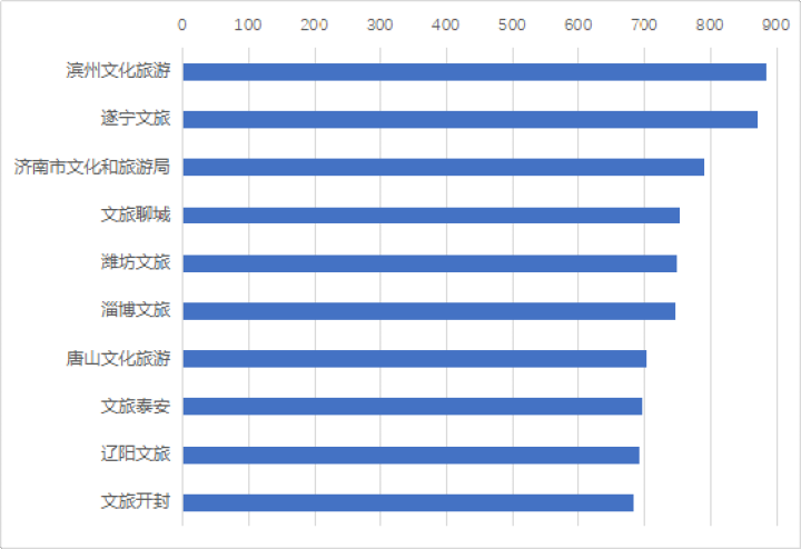 綜合全年的傳播數(shù)據(jù)來看,2020年地級行政區(qū)文化和旅游主管部門的抖音傳播力指數(shù)TOP10排序為:濱州文化旅游、遂寧文旅、濟南市文化和旅游局、文旅聊城、濰坊文旅、淄博文旅、唐山文化旅游、文旅泰安、遼陽文旅、文旅開封。