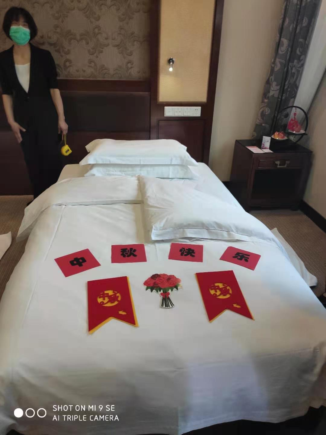 客房部 中式鋪床,甩單、包角、套被子動作干凈利落、一步到位,夜床創(chuàng)意溫馨優(yōu)雅、主題鮮明,“中秋房、國慶房、新婚房”等主題元素唯美突出,給人留下深刻的印象。