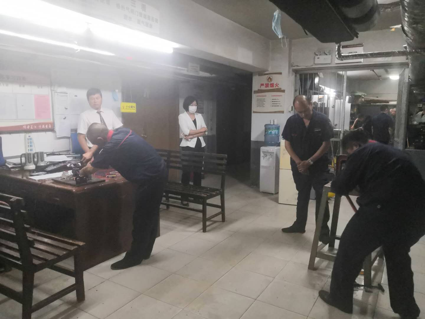 工程部 維修師傅們焊管套絲、電路連接現(xiàn)場操作,動作嫻熟、技能高操,展現(xiàn)了大廈維修人員良好的業(yè)務(wù)技能和高素質(zhì)水平。